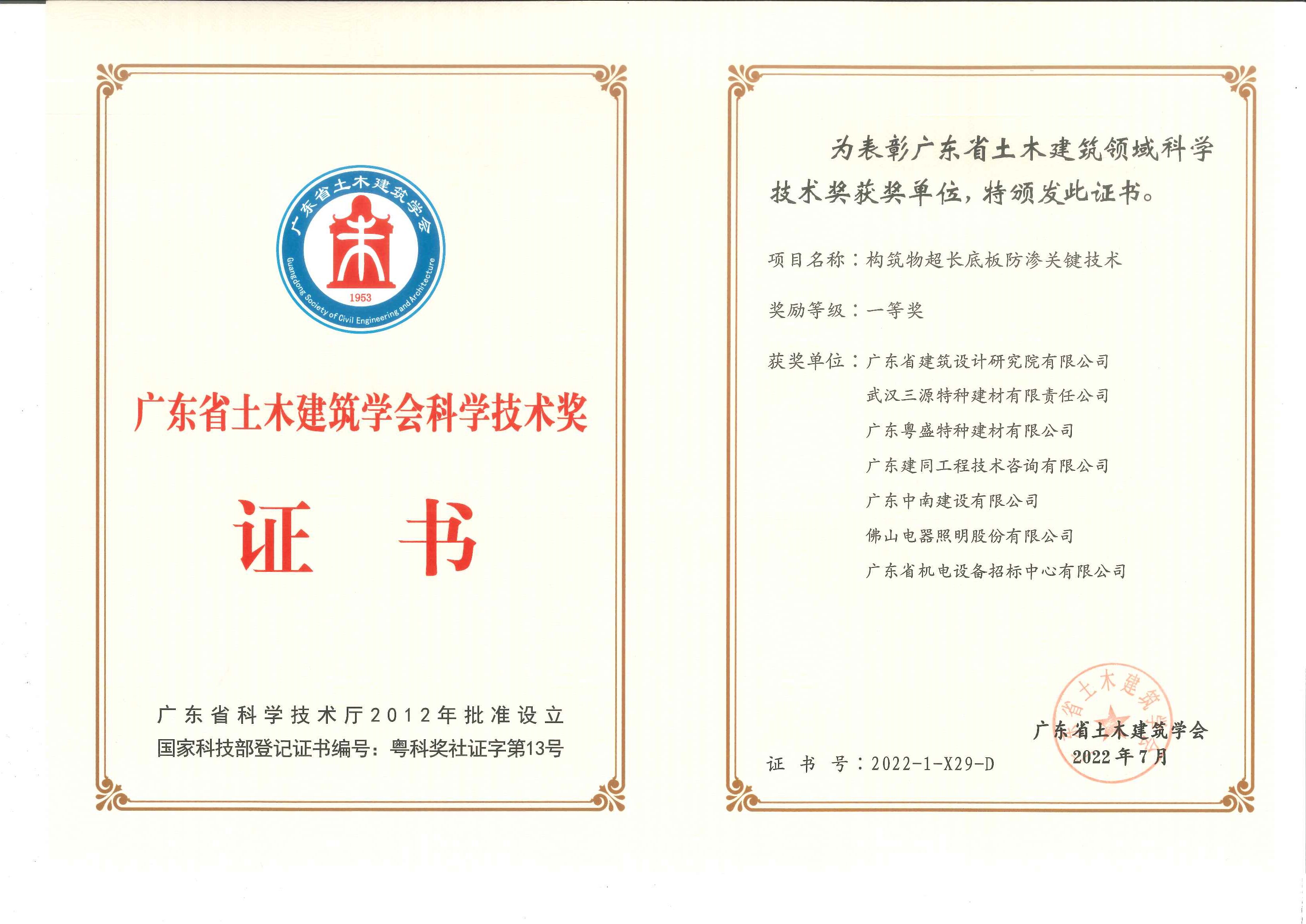 广东省工程勘察设计行业协会科学技术奖(一等奖)-全过程咨询项目设计与投资智慧运营管理研究和应用