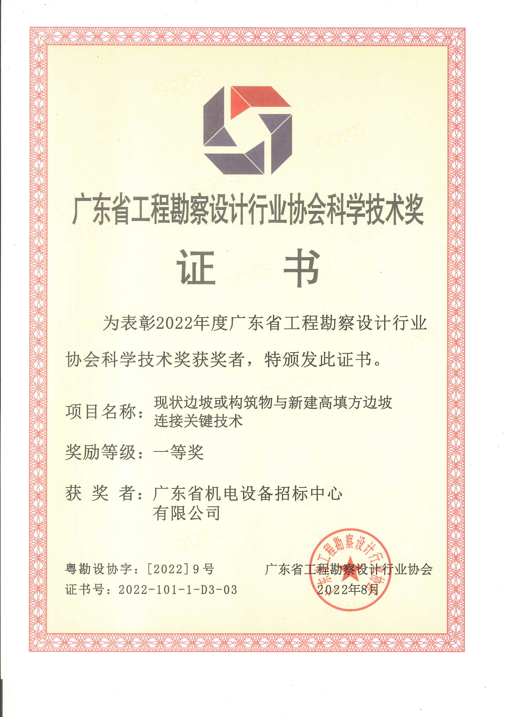广东省工程勘察设计行业协会科学技术奖(一等奖)-现状边坡或构筑物与新建高填方边坡连接关键技术