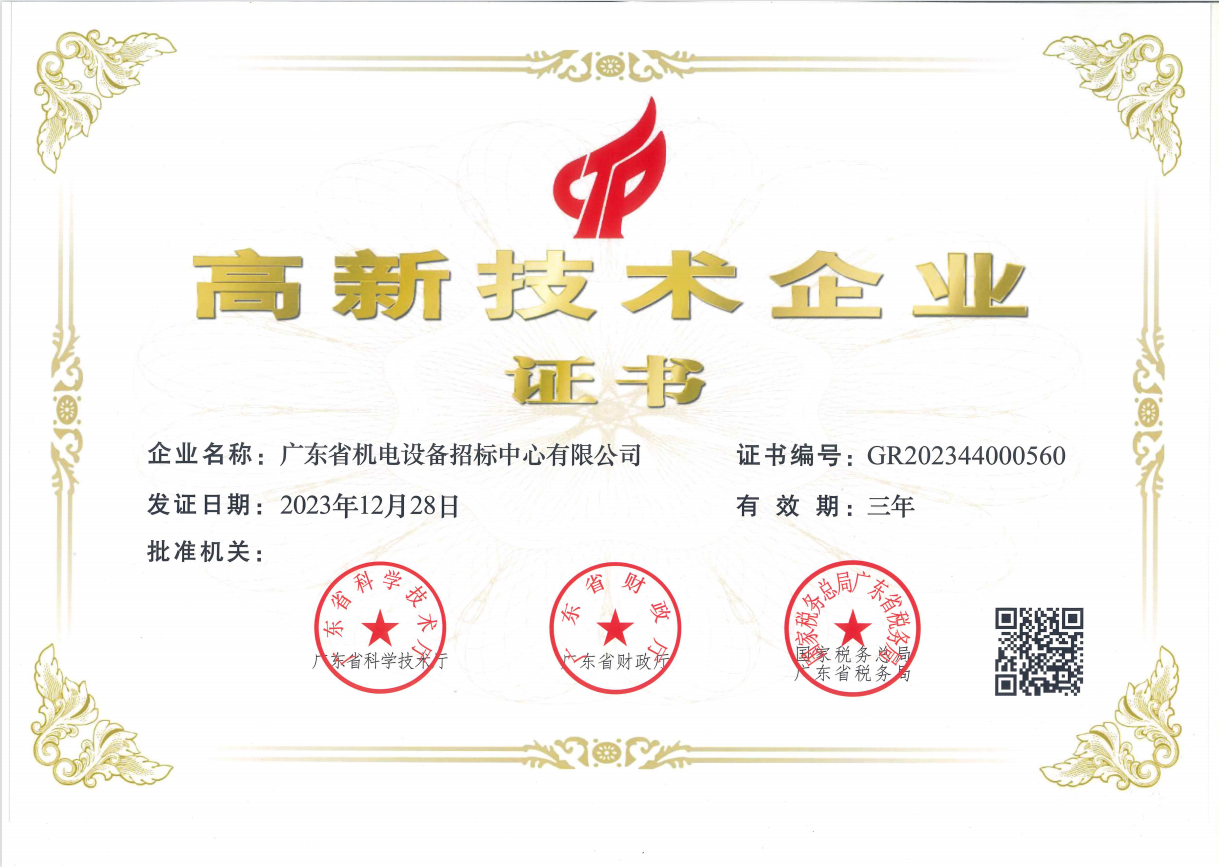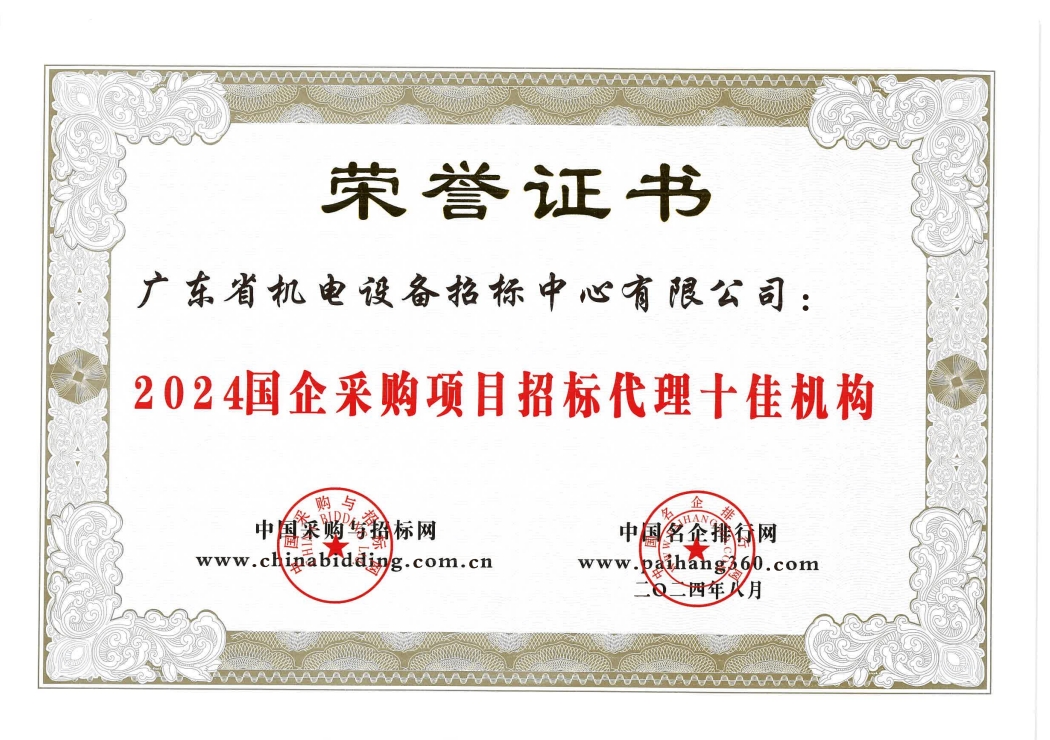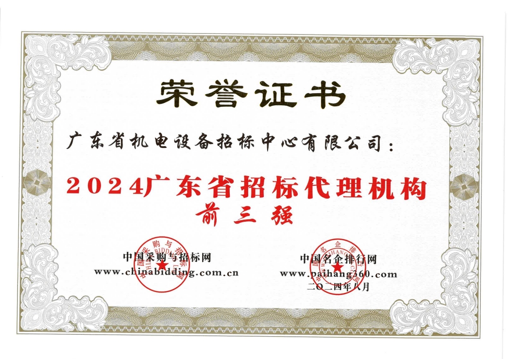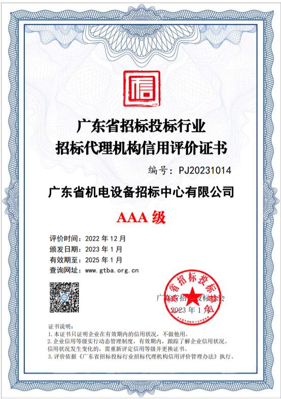 广东省招标投标行业招标代理机构信用评价证书(AAA级)